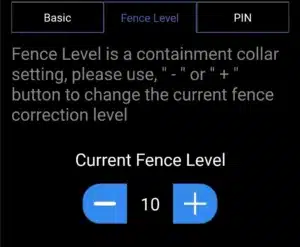 Fence Level Tab (GentleSteps) - This is another way to access the GentleSteps™ Fence Correction Containment Level adjustment screen. After your dog has been up through the GentleSteps™ levels and is responding well it is very important that this level is set high enough that your dog respects the boundary and no longer challenges it.